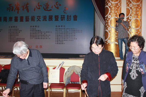 为弘扬中华文化,强化两岸文化艺术交流,推动两岸文化互动,由中华两岸文化艺术基金会和中华将军书画院共同发起,在两岸各大文化机构全力支持下,12月7日―9日在北京全国政协礼堂隆重举办“两岸情 心连心――中华两岸书画艺术交流展”。这次活动在海峡两岸关系协会、海峡交流基金会的指导下,由中两岸文化华文化联谊会、中华文化发展促进会、章亚若教育基金会、中国艺术研究院、中国美术家协会、中华全国台湾同胞联谊会、中华艺术基金会、中国文化院、中国国际书画艺术研究会主办。由全国政协原副主席、中国文联主席孙家正,中华两岸文化艺术基金会名誉会长、中华画院院长李奇茂出任组委会荣誉主席;全国人大原副委员长、中华文化发展促进会会长许嘉璐,中国国民党副主席蒋孝严,文化部部长蔡武出任组委会主席。文化部副部长丁伟、中华两岸文化艺术基金会会长庄汉生、中华将军书画院名誉院长陈德泉出任组委会主任。开幕式上,全国人大委员长许嘉璐对本次活动的组织工作给予高度赞扬,他说:这是一项大有益于沟通两岸人民思想情感的活动,期盼两岸更多的有识之士携手推进两岸文化艺术交流,共同弘扬中华文化,凝聚两岸同胞的情感和共识,同圆中华民族伟大复兴之梦